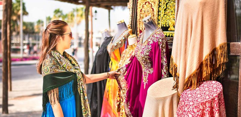 Se ti trattieni qualche giorno a Dubai, è possibile approfittarne per farvi fare un vestito su misura scegliendo voi stessi il tessuto che più vi piace. Lo stile del mercato è tipicamente mediorientale con il tetto in legno decorato da archi e un’illuminazione che crea un’atmosfera particolarmente suggestiva di sera.