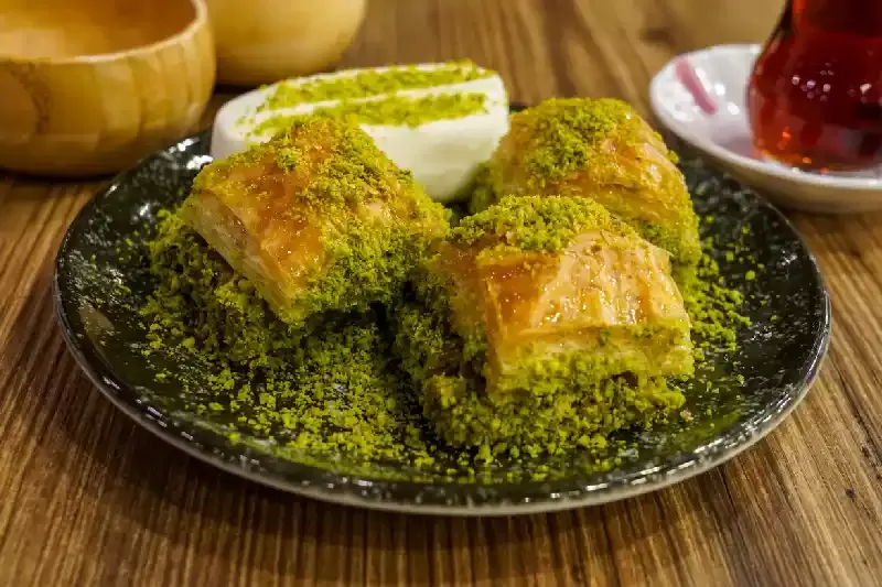 Baklava: dolce a strati di pasta fillo, miele e pistacchi.