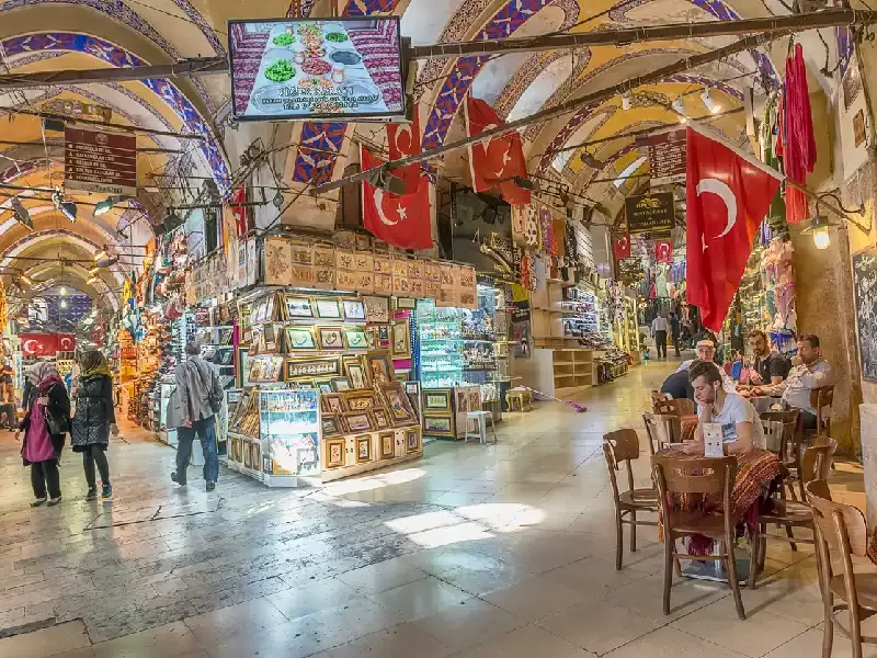 Il Grande Bazar di Istanbul (Kapalıçarşı) rappresenta il cuore pulsante dello shopping tradizionale turco. Con le sue 61 strade coperte e oltre 4.000 negozi, attira quotidianamente tra 250.000 e 400.000 visitatori, classificandosi nel 2014 come l'attrazione turistica più visitata al mondo con 91.250.000 visitatori annuali. Questo labirinto commerciale, fondato nel 1461, impiega oggi 26.000 persone e occupa un'area di 31 ettari. All'interno si trovano anche due antiche moschee, quattro fontane decorate con splendidi mosaici e persino due hammam del XIV secolo. Le merci sono tradizionalmente organizzate per tipologia, con strade che prendono il nome dagli artigiani che vi lavorano.