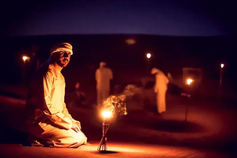 Le danze tradizionali Al-Ayyala e Al-Razfa rievocano l'epopea guerriera del passato emiratino mediante coreografie che simulano antiche battaglie, eseguite con bastoni di bambù al ritmo incalzante di tamburi e cimbali. Questi spettacoli si accompagnano alla poesia Nabati, forma espressiva che celebra i valori beduini di coraggio, dignità e onore, trasmettendo alle nuove generazioni l'eredità morale degli antenati.