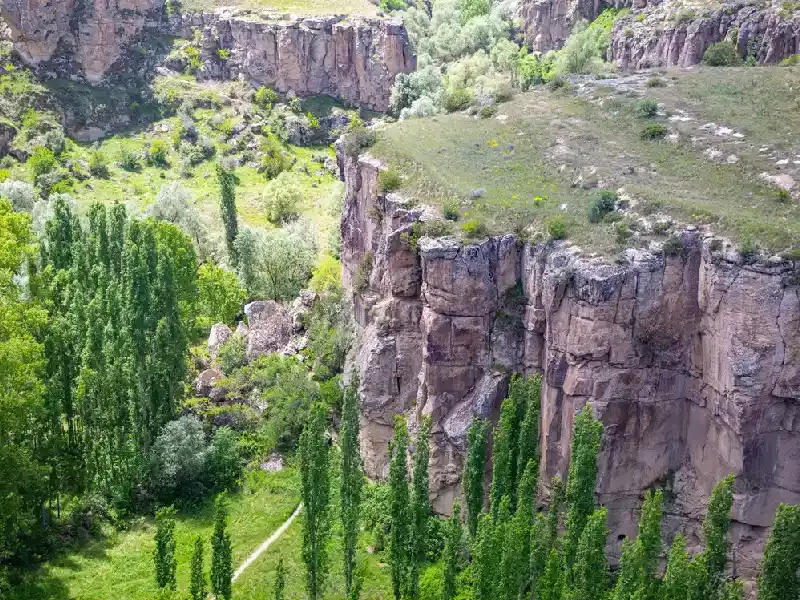 Sebbene sia una delle escursioni più lunghe in Cappadocia, circa 10,5 chilometri percorribili in 3-4 ore, la Valle di Ihlara ripaga ampiamente lo sforzo con la sua straordinaria bellezza. Il percorso inizia dal villaggio di Ihlara e scende nella valle lussureggiante, seguendo il torrente Melendiz tra pareti rocciose che si innalzano fino a 170 metri. Questa profonda gola, formatasi nel corso dei millenni a causa di terremoti ed erosione, rivela un lato completamente diverso della Cappadocia, caratterizzato da una rigogliosa vegetazione in netto contrasto con i paesaggi lunari delle altre valli.