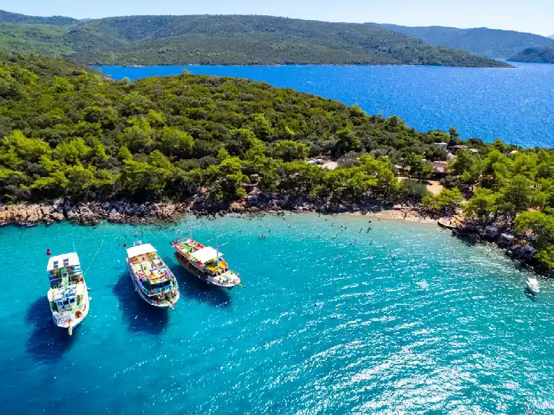 Da non perdere sono anche le spiagge cristalline come İçmeler, a soli 8 km dal centro, circondata da pini e montagne, e il Parco Nazionale di Marmaris, istituito nel 1996, che copre un'area di 292 km² e rappresenta un paradiso per gli amanti della natura. Per chi cerca divertimento, la vivace vita notturna di Bar Street e l'Atlantis Water Park, il più grande parco acquatico della zona, completano un'offerta turistica davvero completa.