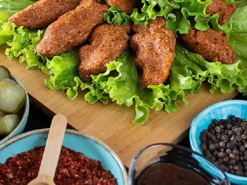 Tradizionalmente preparate con carne cruda, oggi queste polpette sono diventate vegetariane per legge (salvo preparazioni casalinghe). Realizzate con bulgur, cipolla, pasta di peperone e pomodoro, spezie ed erbe aromatiche, vengono servite avvolte in foglie di lattuga o in sottili pani lavash. La loro origine risale a 3.000 anni fa, durante il regno di re Nimrod nella regione di Adıyaman. La combinazione di bulgur e noci le rende una fonte completa di proteine, ideali per un pasto veloce ed economico.