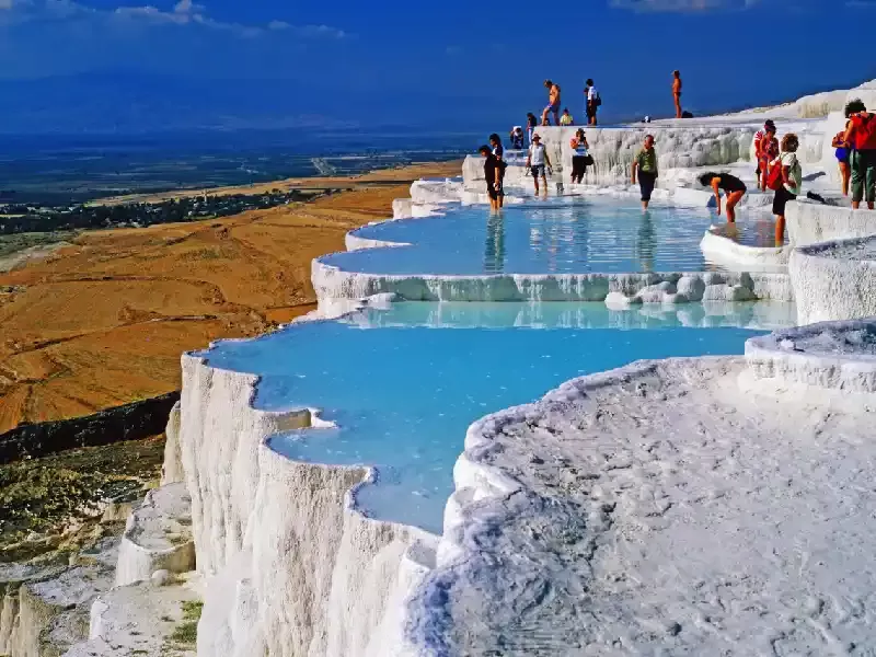 Ricche di minerali e benefici terapeutici, le acque delle terme di Pamukkale non sono solo spettacolari da vedere, ma offrono anche straordinarie proprietà curative. Queste sorgenti termali contengono un cocktail naturale di idro-carbonato, zolfo, calcio, biossido di carbonio e ferro, che sgorgano a temperature variabili tra i 33° e i 56°C.