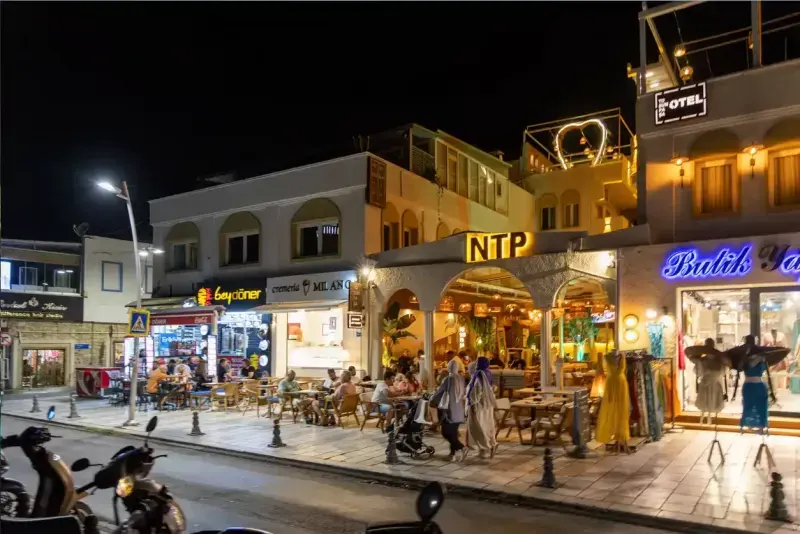 Bodrum è anche una città perfetta per chi vuole unire la buona cucina alla socialità serale. Qui si trovano ristoranti di lusso e bar sulla terrazza che offrono cocktail raffinati e un'atmosfera cosmopolita. Non perdere il "Mistral", un ristorante con vista sul mare che offre cucina gourmet e spettacoli dal vivo, o il "Fink", un bar esclusivo che diventa il punto di ritrovo dei VIP.