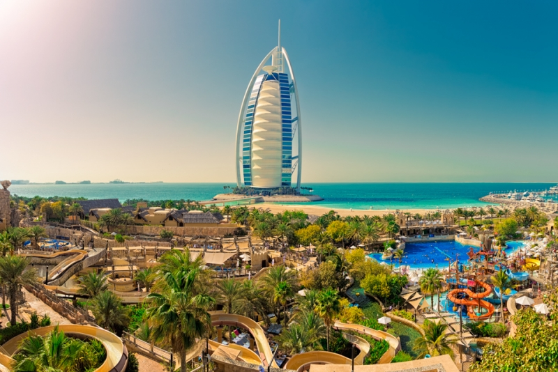 - Burj Al-Arab, fra le maggiori mete turistiche a Dubai. È l’unico albergo a 7 stelle in tutto il mondo e contiene un ristorante subacqueo.