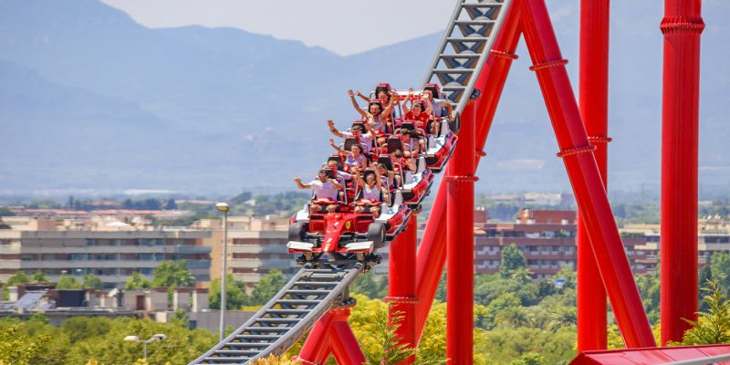 Oltre alle famose montagne russe come Formula Rossa, non perdete il Roof Walk sul tetto del parco, la Galleria Ferrari con auto storiche, l'esperienza Bell'Italia e i simulatori di guida Scuderia Challenge. Queste attrazioni offrono un mix unico di adrenalina e cultura Ferrari.