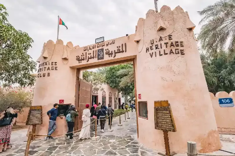 L'Heritage Village offre un'ampia gamma di attrazioni, tra cui un museo con reperti storici, botteghe artigianali dove osservare dimostrazioni dal vivo, abitazioni tradizionali, tende beduine e una spiaggia con imbarcazioni tipiche. I visitatori possono anche interagire con animali locali e fare acquisti al mercato delle spezie.