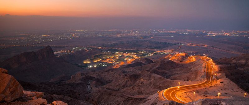 La Jebel Hafeet Mountain Road, conosciuta come una delle strade più panoramiche del mondo soprattutto all'ora del tramonto. Le sue strade tortuose sono una delle strade più meravigliosi in cui è possibile praticare l'hobby della guida, dove la lunghezza di questa strada che supera i 14 chilometri.