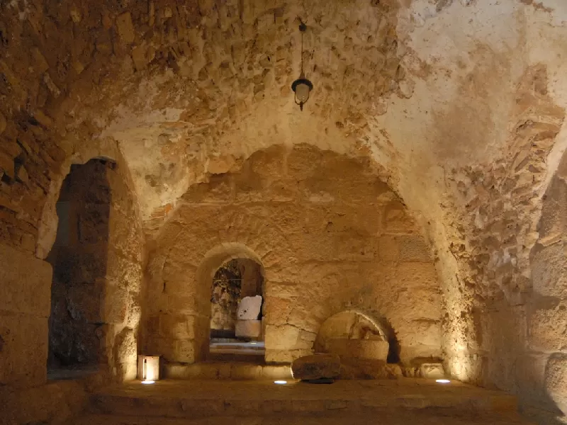 All'interno del Castello di Ajlun si possono ammirare numerosi manufatti che testimoniano la ricca storia del sito. Tra questi, spicca un bellissimo mosaico di origine greca, che rappresenta simboli cristiani come il pesce, il pane e la croce. Inoltre, è presente un bassorilievo in pietra che raffigura un fiore sopra una scimitarra, collocato di fronte al mosaico.