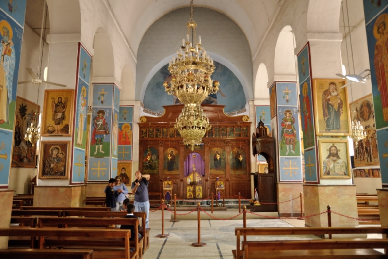 Questa bellissima chiesa è uno dei principali luoghi di culto e meta di pellegrinaggio di tutta la Giordania, arricchito da interni sontuosi, eleganti colonnati e vari mosaici. Tra questi, il sito ospita il più celebre mosaico bizantino di Madaba, "La mappa di Terrasanta". La costruzione della chiesa di fatto è stata motivo della sua scoperta, avvenuta a fine '800. Il mosaico raffigura l'itinerario in direzione di Gerusalemme ai tempi delle crociate, un percorso che attraversava più di centocinquanta località. La qualità dell'opera è valorizzata da 157 didascalie in greco segnalanti i principali siti biblici dall'Egitto alla Palestina. Purtroppo ai nostri giorni è giunto solo un terzo dell'opera originaria, lunga fino a più di venti metri e formata da circa due milioni di tessere.