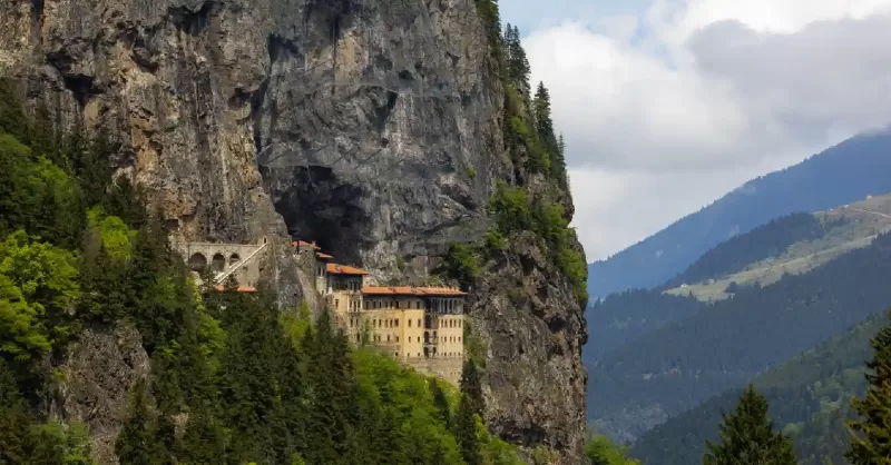 Monastero di Sumela rappresenta un tesoro storico e architettonico senza pari, dove sedici secoli di storia si intrecciano con la spiritualità e l'arte bizantina. Infatti, questo straordinario complesso monastico continua ad affascinare visitatori da tutto il mondo grazie ai suoi affreschi mozzafiato e alla sua posizione spettacolare sulla parete rocciosa.