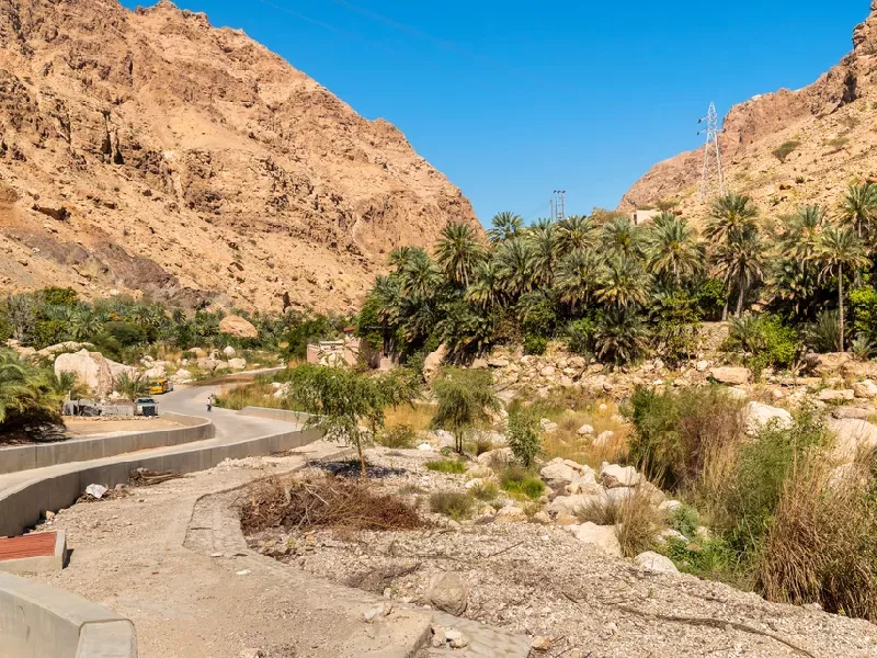 L'accesso ai tesori più remoti di Wadi Tiwi, come il villaggio di Mibam e le sue cascate segrete, richiede il coraggio di affrontare strade ripide e impegnative che rendono indispensabile un veicolo 4x4. Questa sfida diventa però il preludio a una rivelazione straordinaria: un paesaggio dove palmeti carichi di datteri dorati si alternano armoniosamente a piantagioni di banane, lime fragranti, papaya tropicali e manghi succosi.